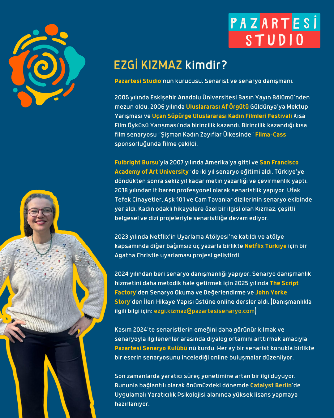 Pazartesi Studio’nun kurucusu. Senarist ve senaryo danışmanı.